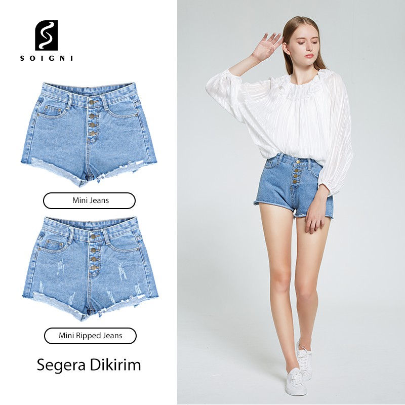 SOIGNI Celana Jeans Pendek Wanita Mini Shorts Ripped High . Sumber Gambar : shopee.co.id