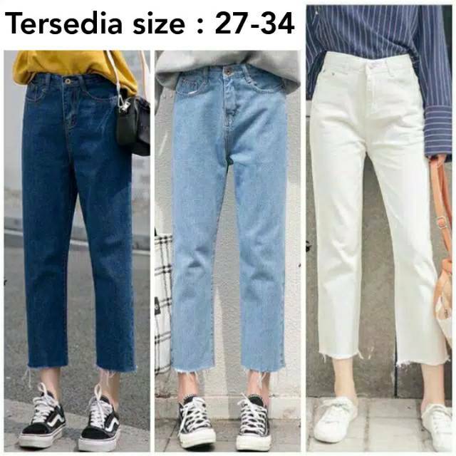 CELANA JEANS WANITA CUT BF BOYFRIEND CUT CROP UNFINISHED Sumber : shopee.co.id